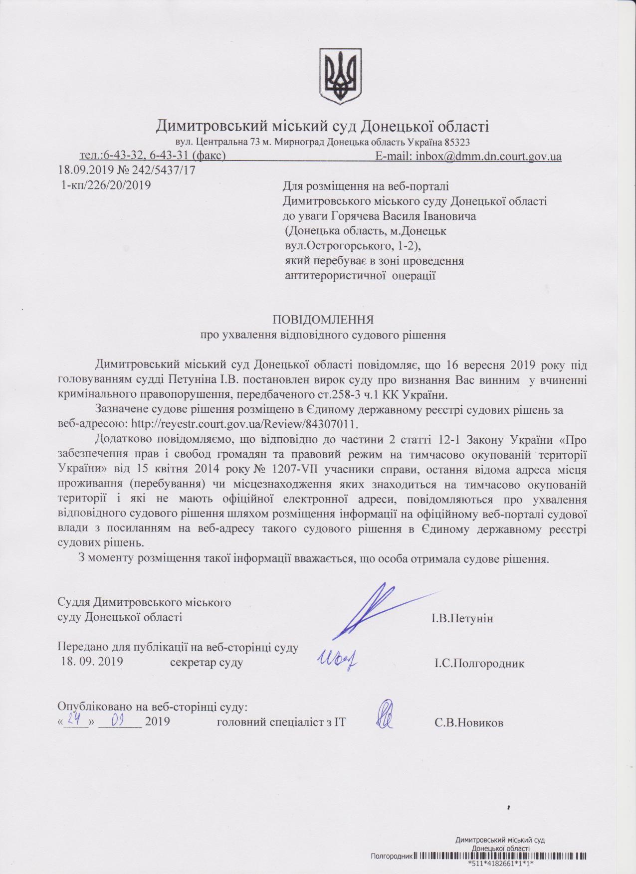 До уваги Горячева Василя Івановича