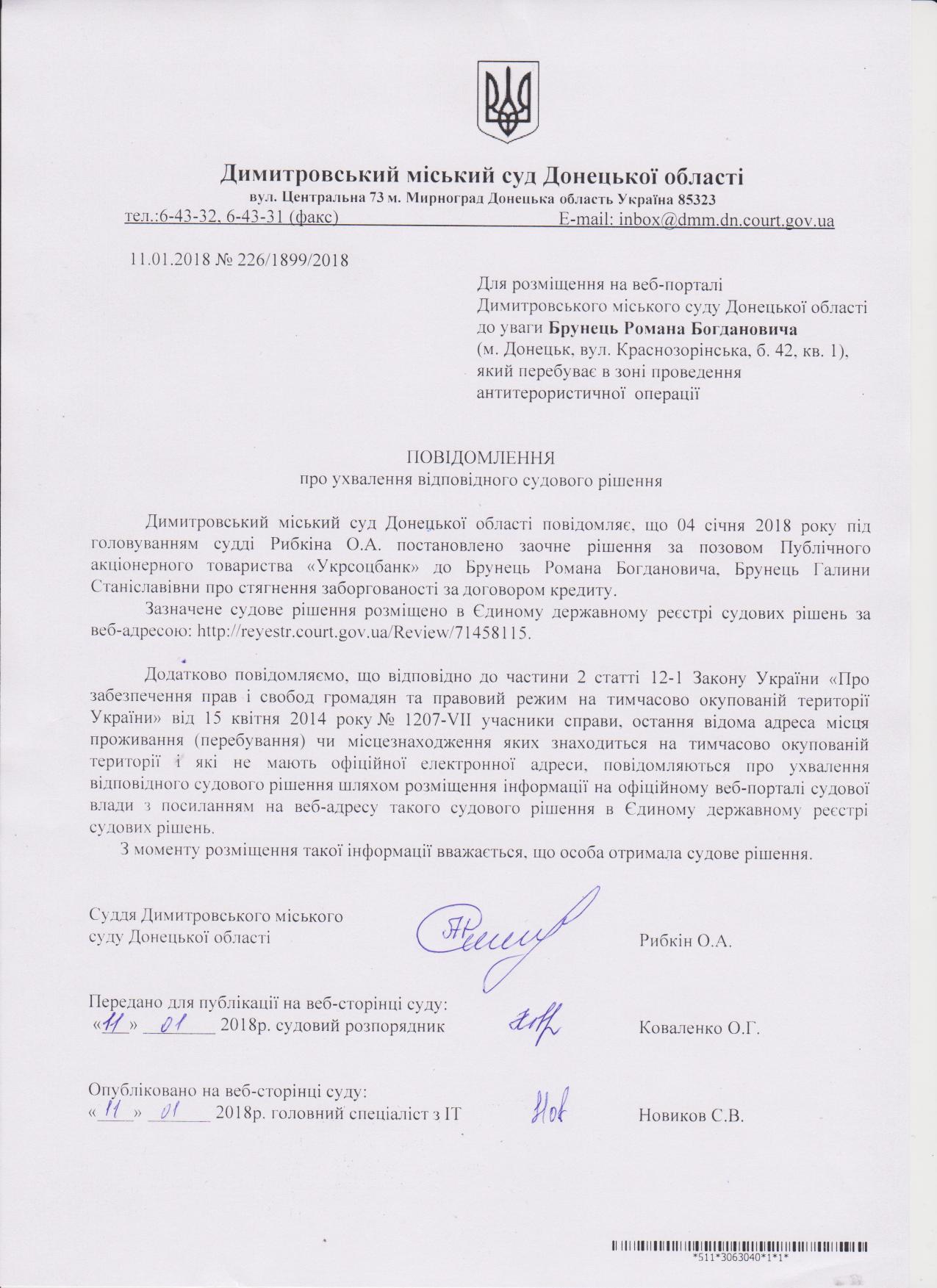 До уваги Брунець Романа Богдановича