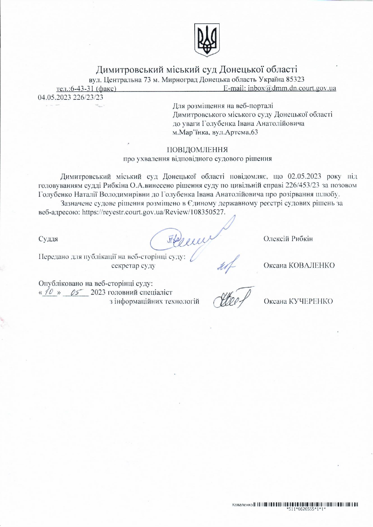 До уваги Голубенко Н.В. та Голубенка І.А.