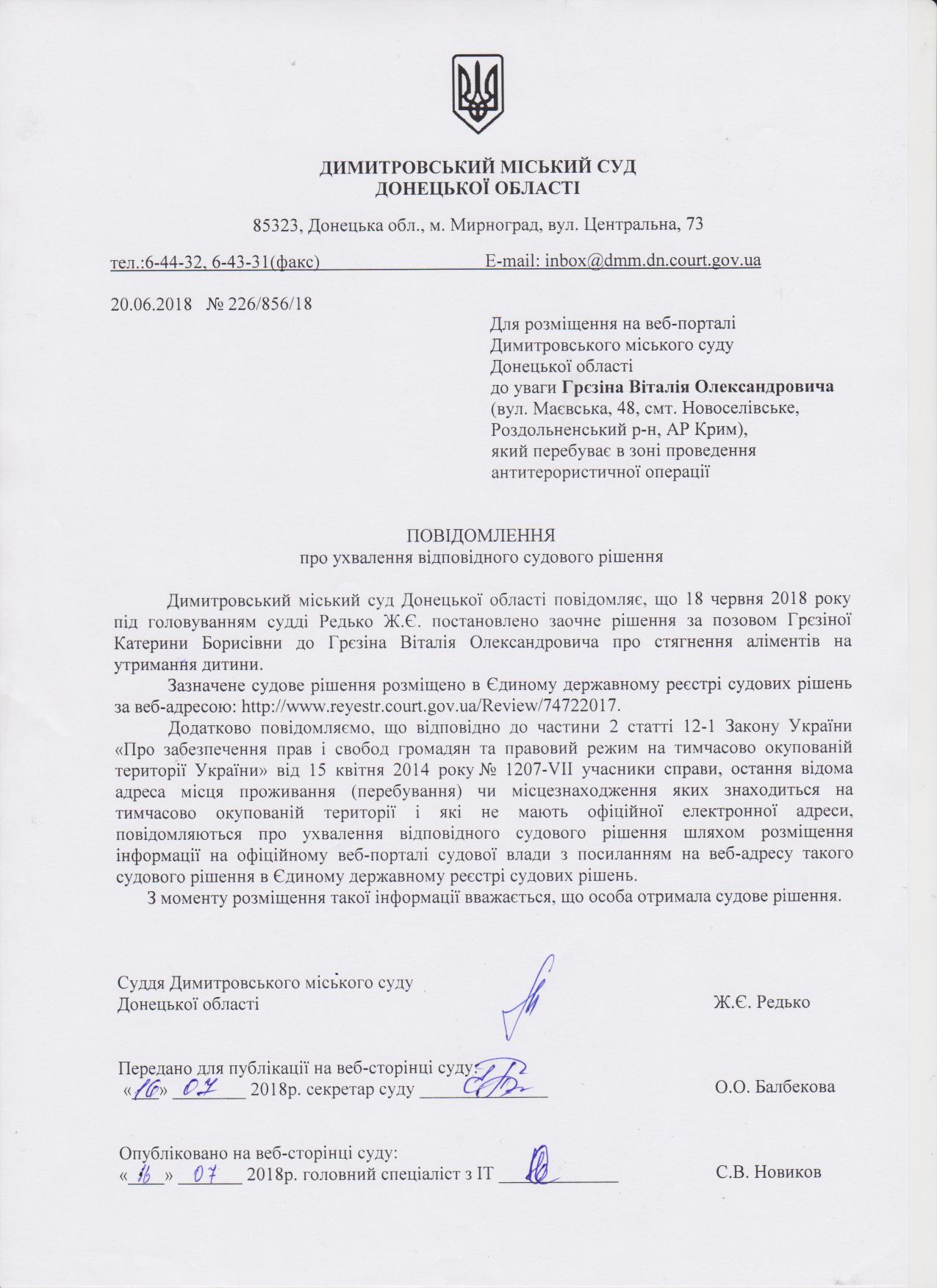 Оголошення про виклик особи в суд та повідомлення про судове рішення