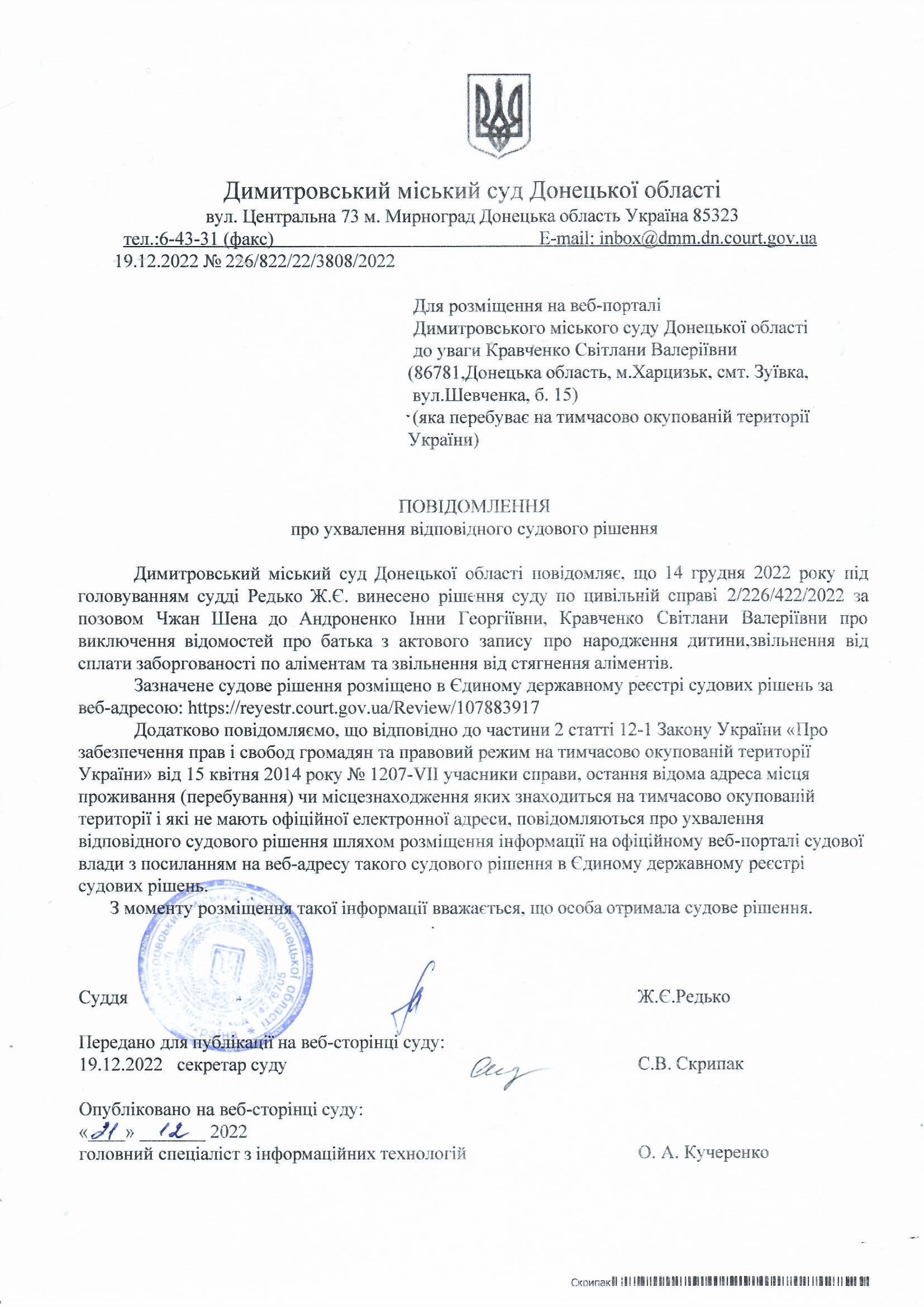 Повідомлення про відповідне судове рішення