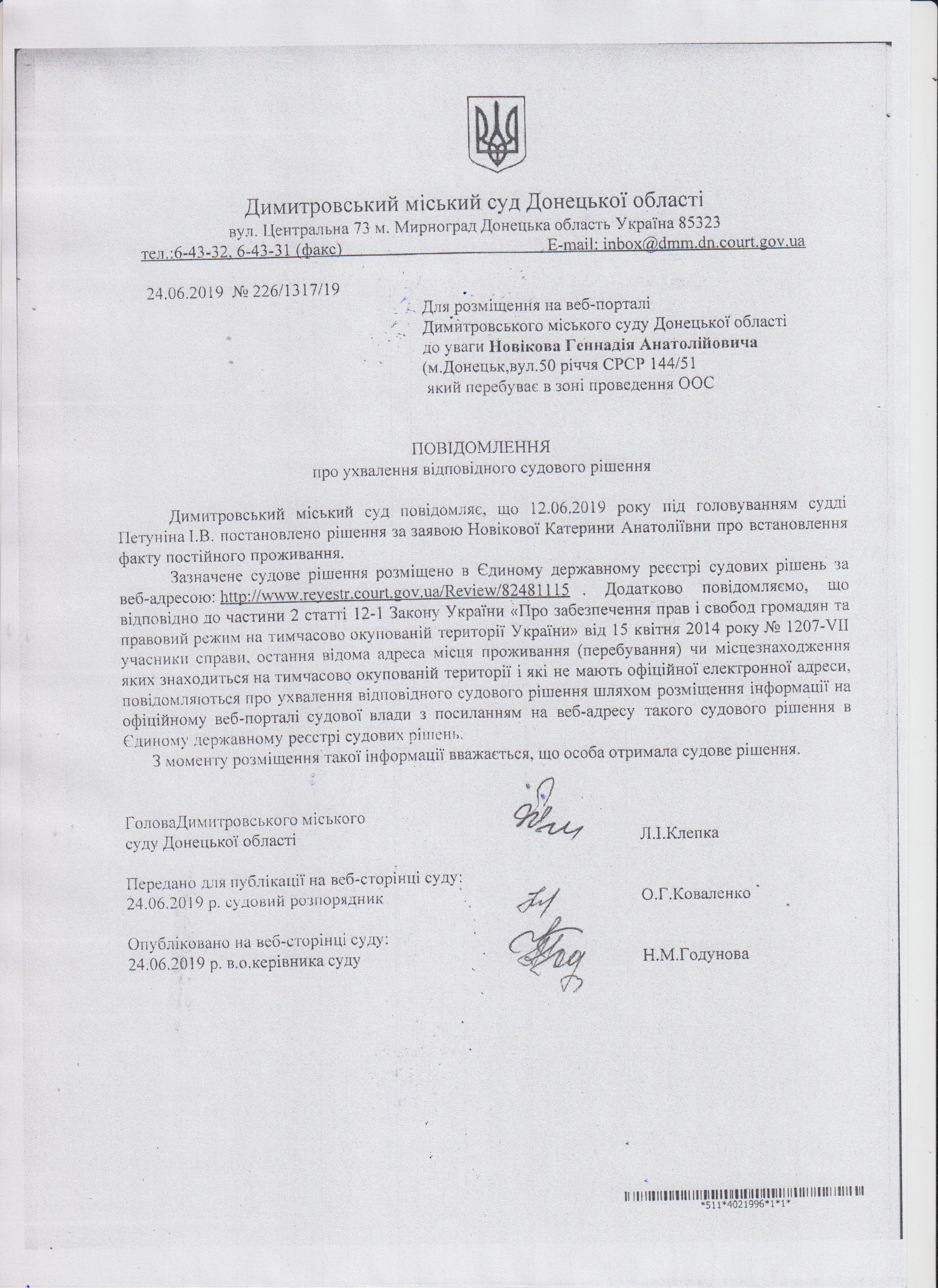 Оголошення про виклик особи в суд та повідомлення про судове рішення