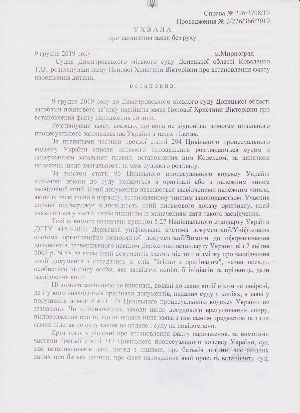 До уваги Попової Христини Вікторівни