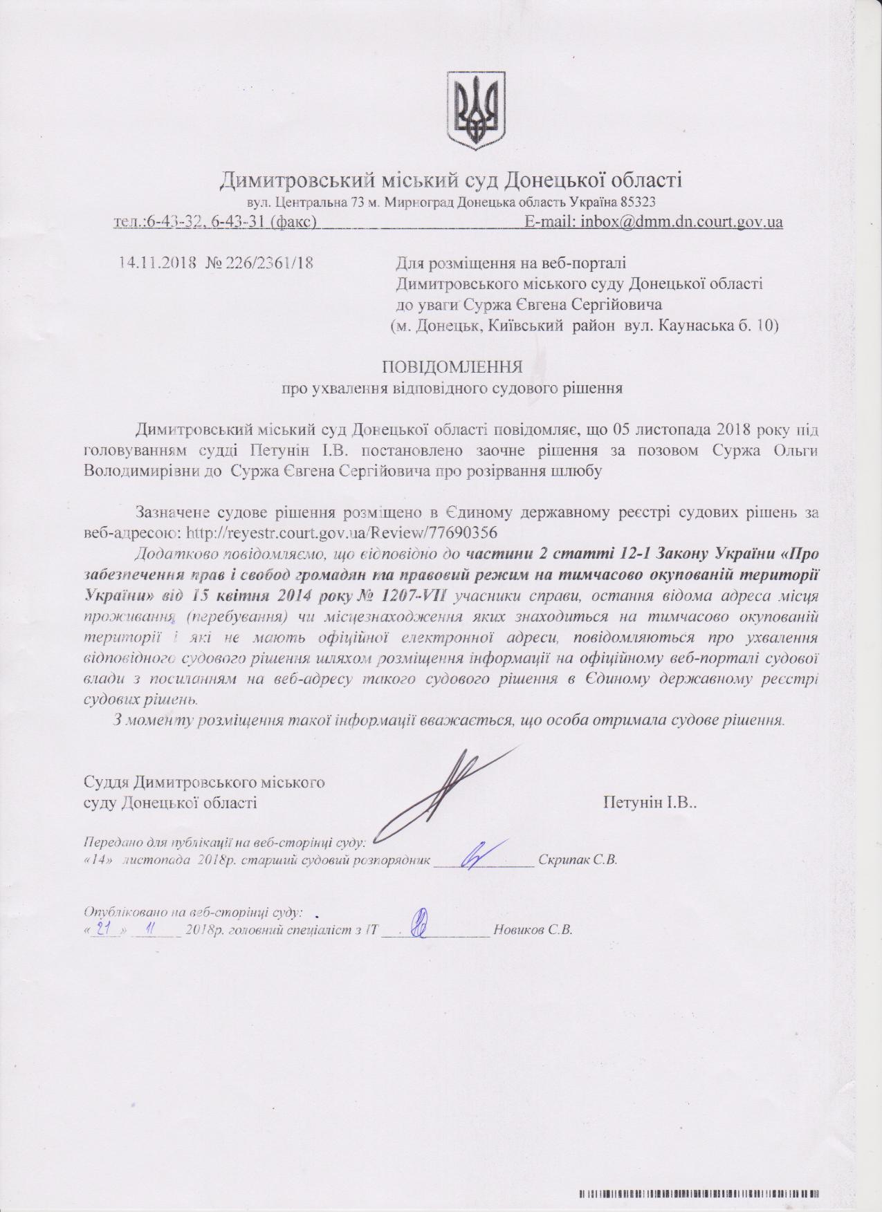 Повідомлення про відповідне судове рішення