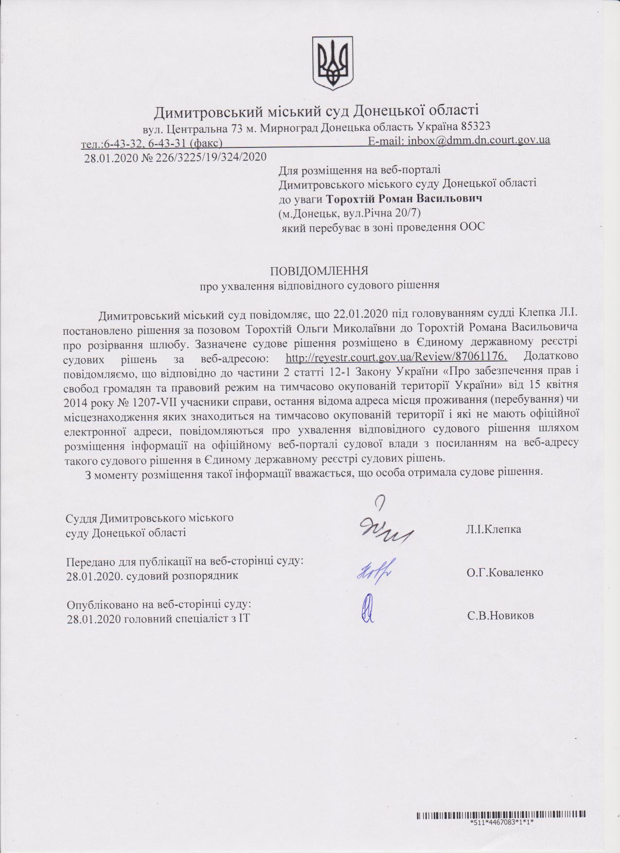 Оголошення про виклик особи в суд та повідомлення про судове рішення